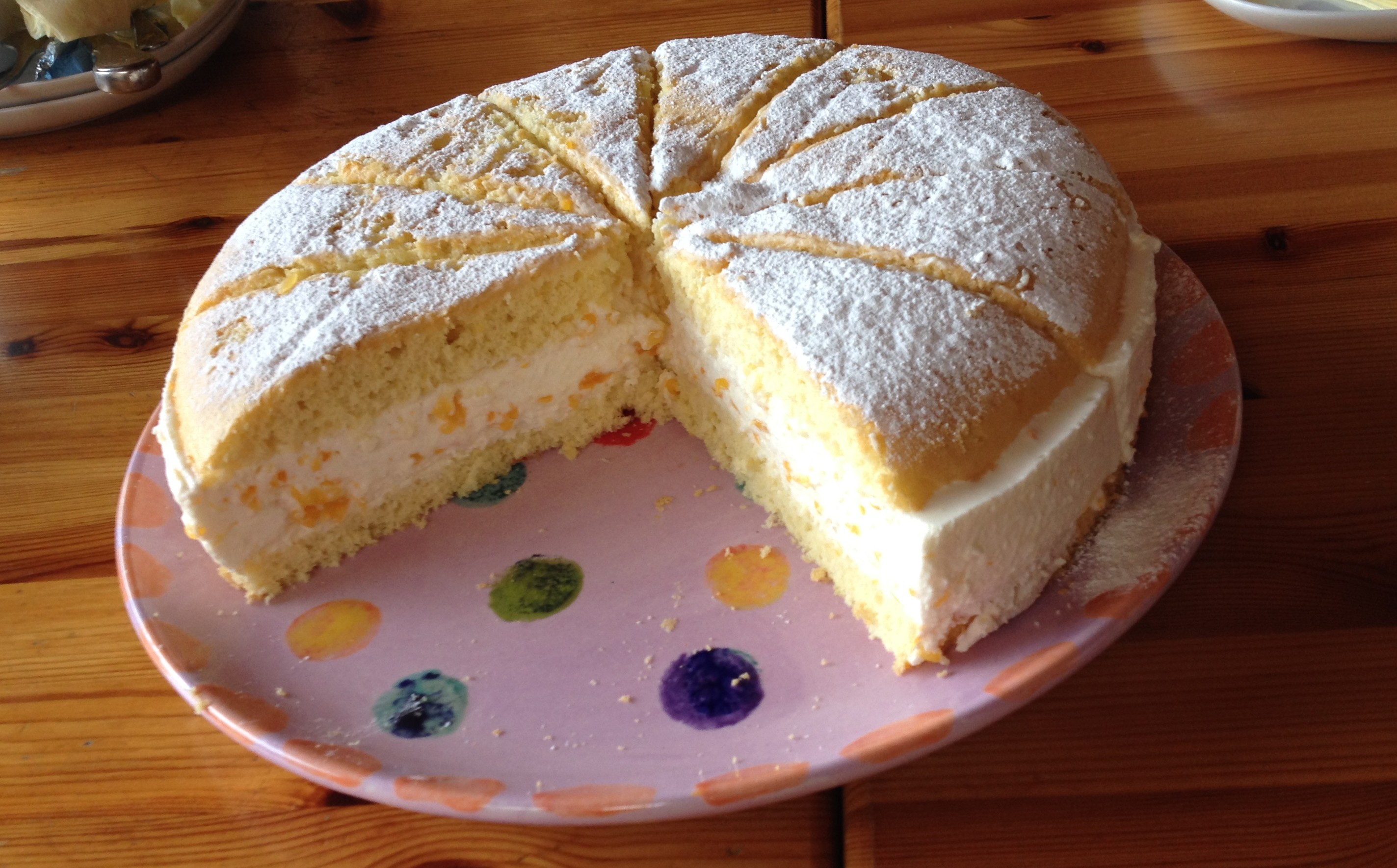 ‘, which is a gathering around a collection of cakes under the pretext of meeting up with friends, but really for the sole purpose of eating cake. Christiane served up this delicious cheesecake, or rather cheese gateau, a delicious combination of sweet sponge and fresh and slightly tart quark, which makes it the perfect cake for a warm and sunny afternoon.