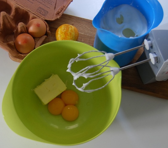 Always beat the egg whites first – that way you can use the same whisks for the yolks without having to carefully wash them!