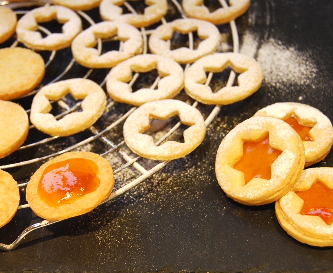 These biscuits have been part of our family Christmas for as long as I remember: crumbly and buttery shortbread-style biscuits, filled with apricot jam – ‘Marillen’ being the Austrian dialect word for apricots. In many ways they are a distant cousin of my butter biscuits, which I openly preferred when smaller, because of the fact that they came in funny shapes. But with age comes wisdom, which in my case means that I can now fully appreciate the jamminess of these little cookie-sandwiches.