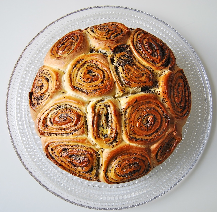 My one-man campaign to make you fall in love with wheat again is reaching a new high these days with the celebration of Easter: forget the chocolate eggs, Easter is the time for yeasted breads! And for something very special, I suggest filling them with poppy seeds. Their subtle aroma and unique texture explains its popularity as a filling for all sorts of cakes in Germany, Austria and the neighbouring countries. There you can buy the filling ready made, whereas here in the UK you will need to grind down the poppy seeds using a spice mill or a mortar and pestle. But trust me: it’s well worth it.